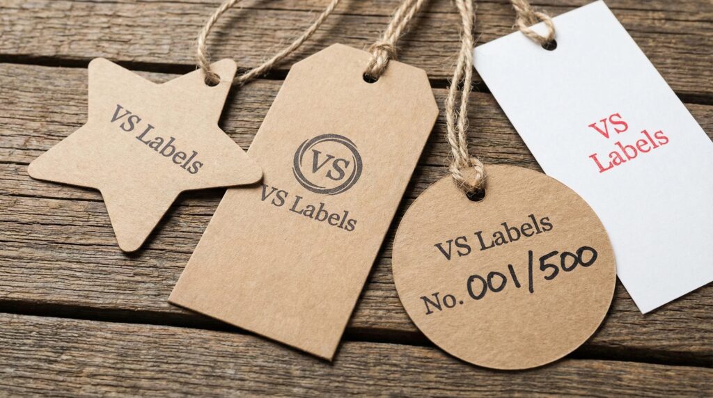 We offer die-cut shapes, standard plain or printed tags, serial numbering for limited editions, and durable eyelets